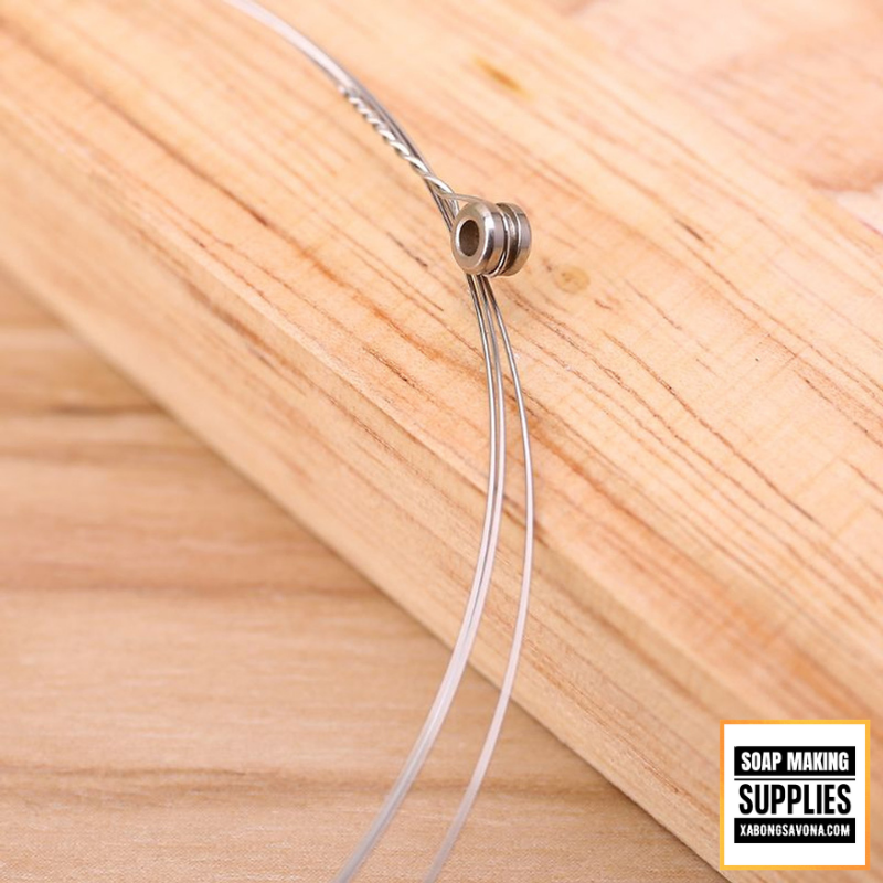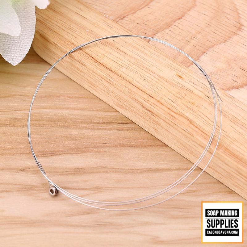 Dây cắt xà phòng thay thế loại thép chống rỉ dùng để thay thế vào dụng cụ cắt xà phòng giúp việc cắt xà phòng không bị gián đoạn, dây phù hợp cho mọi loại máy từ máy cắt xà phòng 1 dây đến máy cắt xà phòng nhiều dây hay máy cắt xà phòng công nghiệp xilanh nén khí. Dây cắt xà phòng thay thế có nhiều độ dày khác nhau tùy thuộc vào độ cứng bánh xà phòng, dây mảnh đường cắt sẽ nét hơn dây to.