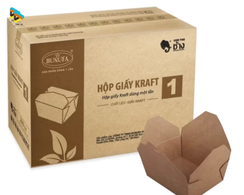 - Hộp giấy kraft đựng phẩm phẩm: Hầu hết các loại hộp giấy kraft được sử dụng để đựng thực phẩm. Chiếc hộp giấy kraft được tráng PE, với lớp cán màng PE mỏng để chống dầu mỡ, giữ cho form dáng hộp cứng cáp khi đựng thức ăn nóng. Lựa chọn ý tưởng cho hộp giấy đựng thức ăn.