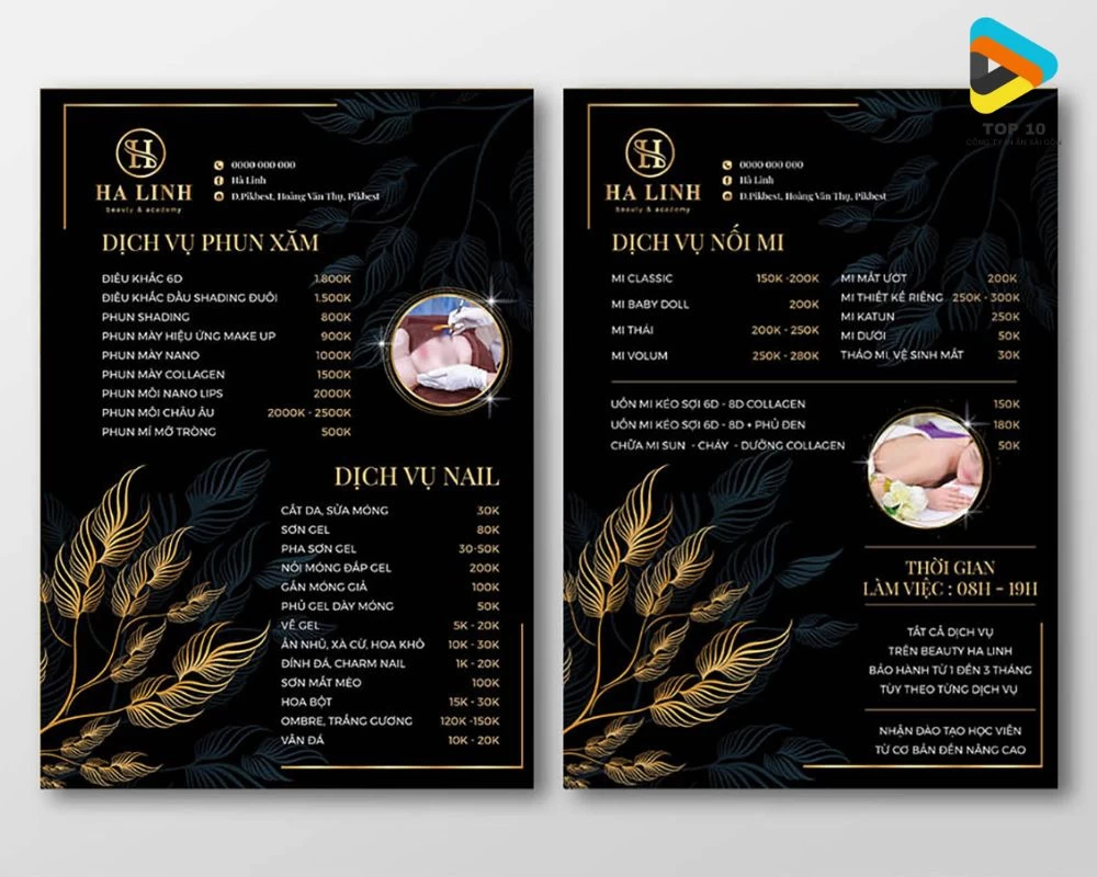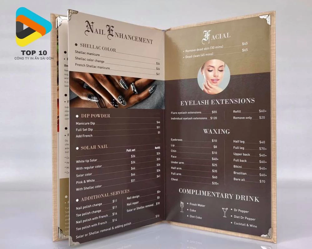 6.3. Mẫu menu bìa cứng nails, spa, salon