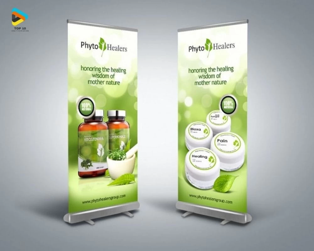 - Standee cuốn có kích thước: 60×160cm, 80×200cm