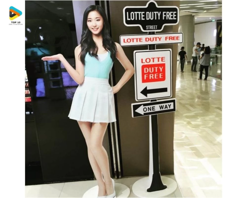 Mẫu standee quảng cáo có hình ảnh đẹp mắt, sinh động, và được cắt theo kích thước chân thực với hình ảnh, đem lại sự gần gũi.